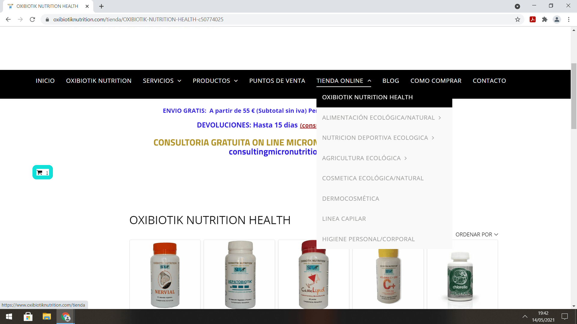 Otra opción es contactar con un establecimiento que disponga de la LINEA OXIBIOTIK NUTRITION para que le tramiten el pedido por teléfono o bien personalmente