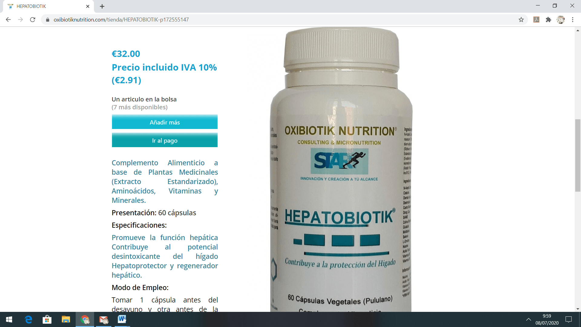 6- Si desea más cantidad del producto escogido, puede añadir lo que quiera pulsando en el apartado en rojo