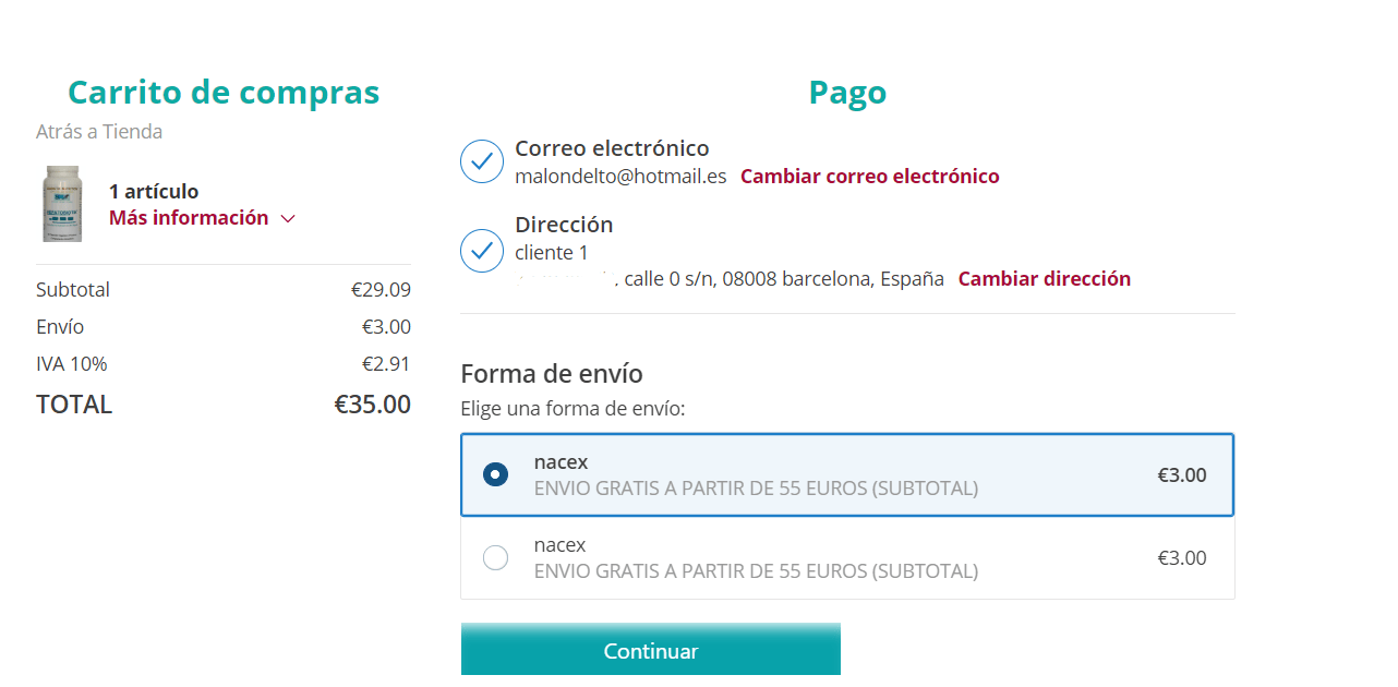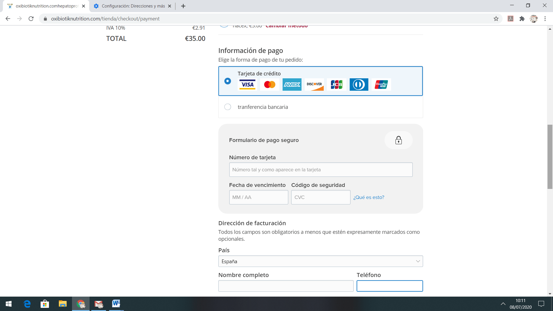 En este apartado debe escoger la forma de pago.